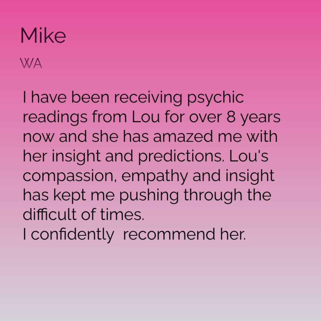 I have worked professionally on psychic phone lines and through my website privately in New Zealand and Australia.