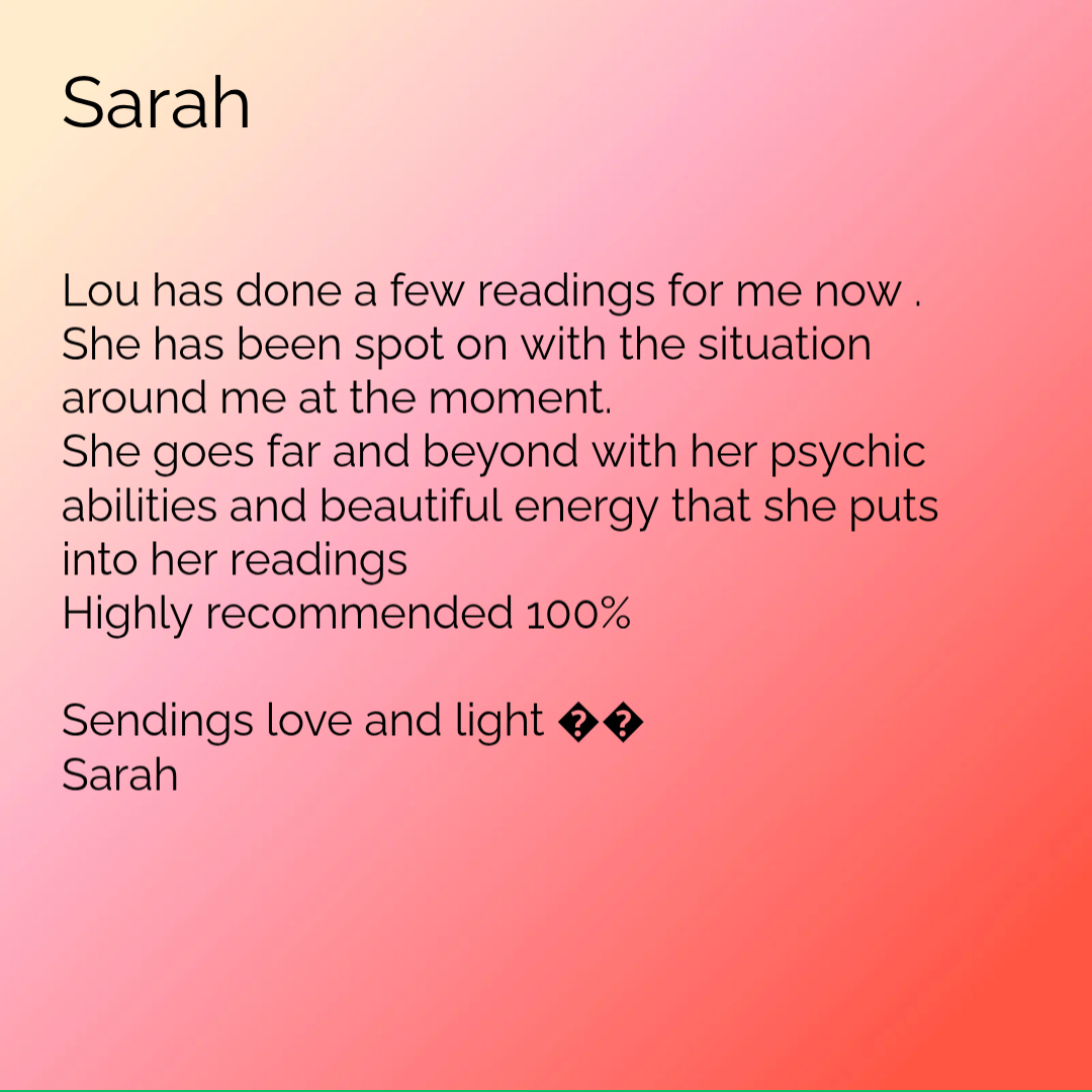 My gifts have been passed down to me from a strong line of psychic woman in my family. These gifts allow me to channel psychic energy and provide you with insights and awareness of what is coming towards you while helping you prepare for the coming journey ahead. I work closely with my spiritual team and yours to answer your questions and to help guide you while offering you support and genuine caring while we navigate together this journey you are on.